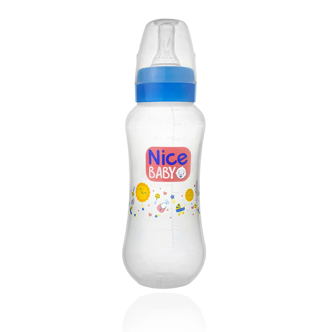 نايس بيبي ببرونة بدون يد لبني 280 مل - Nice Baby Feeding Bottle Without Handle Light Blue 280 ml